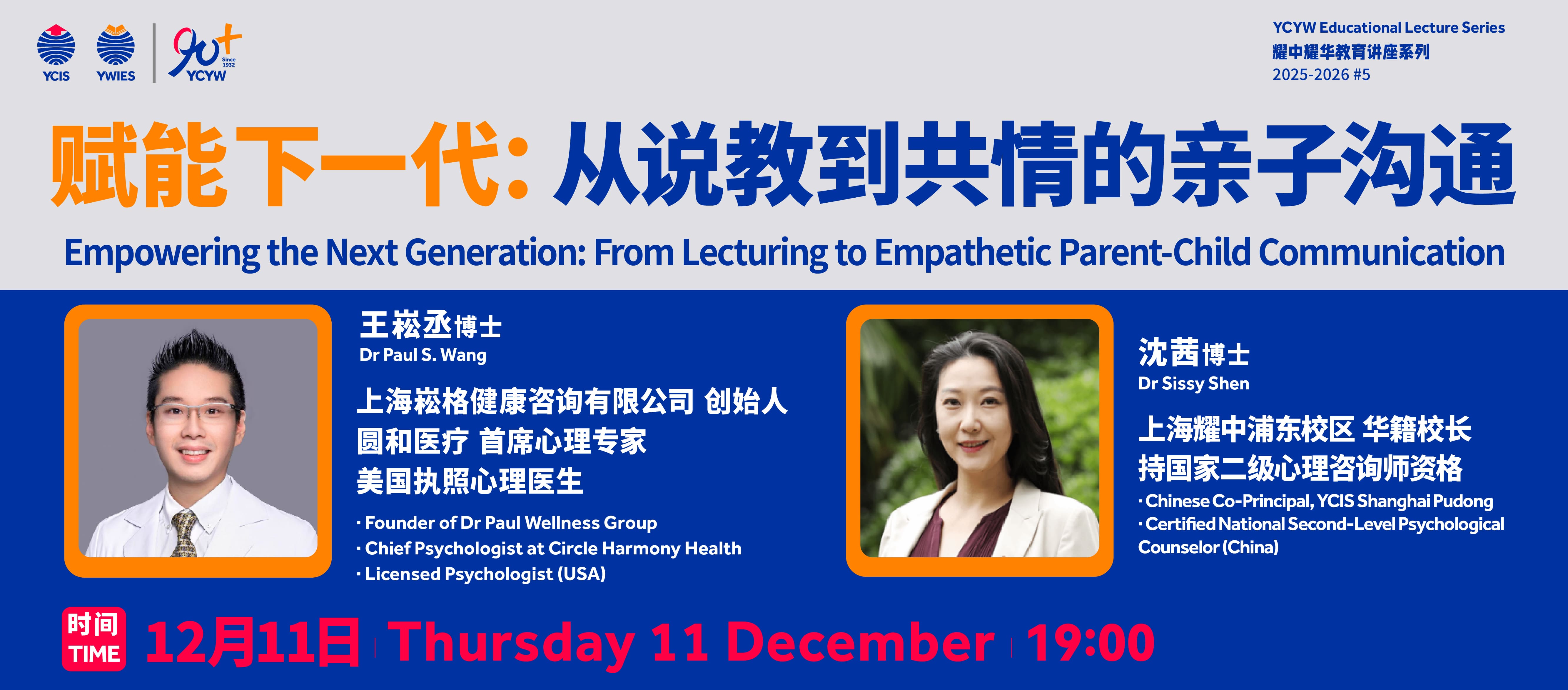本講座為耀中耀華教育系列講座之一,將於上海耀中國際學校浦東校區舉行。